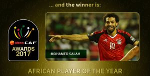 L’attaquant égyptien Mohamed Salah a été sacré meilleur joueur africain de l’année 2017, jeudi soir à Accra, lors de la cérémonie de remise des trophées de la Confédération africaine de football CAF Awards.